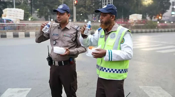 সড়কেই ইফতার, দায়িত্বে অবিচল ট্রাফিক পুলিশ