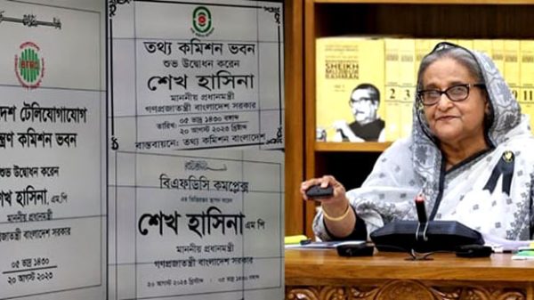 প্রধানমন্ত্রী শেখ হাসিনা রাজধানীর আগারগাঁওয়ে নবনির্মিত ১৫ তলাবিশিষ্ট ‘বাংলাদেশ টেলিযোগাযোগ নিয়ন্ত্রণ কমিশন’ (বিটিআরসি) ভবন ও ১৩ তলাবিশিষ্ট ‘তথ্য কমিশন ভবন’ উদ্বোধনকালে প্রধান অতিথির ভাষণে আজ একথা বলেন।
