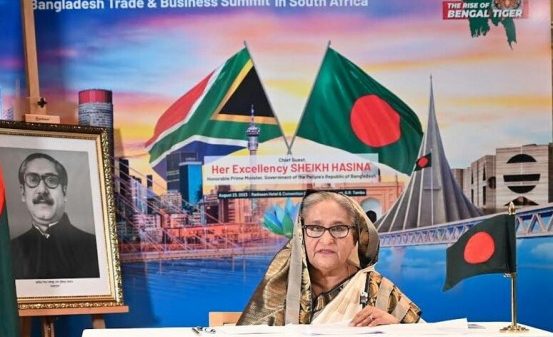 দক্ষিণ আফ্রিকার প্রেসিডেন্ট সিরিল রামাফোসার আমন্ত্রণে ১৫তম ব্রিকস শীর্ষ সম্মেলনে যোগ দিতে শেখ হাসিনা এখানে এসে পৌঁছেন। সম্মেলনে প্রধানমন্ত্রী বলেন, বাণিজ্য, ব্যবসা ও বিনিয়োগের জন্য আরো বেশি বন্ধুত্বপূর্ণ লক্ষ্য নির্ধারণে বাংলাদেশ তার বাণিজ্যিক পরিস্থিতিকে দৃঢ়তার সাথে শক্তিশালী করে চলেছে।