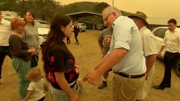 তা সত্ত্বেও যেচে কথা বলতে গেলে মরিসনের উপর ক্ষোভে ফেটে পড়েন এক ব্যক্তি। তিনি বলেন, ‘‘আপনি একটা ইডিয়ট। এখন কী করতে এসেছেন? এখানে আর ভোট পাবেন না।’’ স্থানীয় এক মহিলা বলেন, ‘‘বন্যা হোক বা দাবানল, আমাদের কথা কেউ মনে রাখে না। যান গিয়ে আতসবাজির রোশনাই দেখুন।’’ মরিসনকে লক্ষ্য করে কটূক্তিও উড়ে আসতে শুরু করে।
