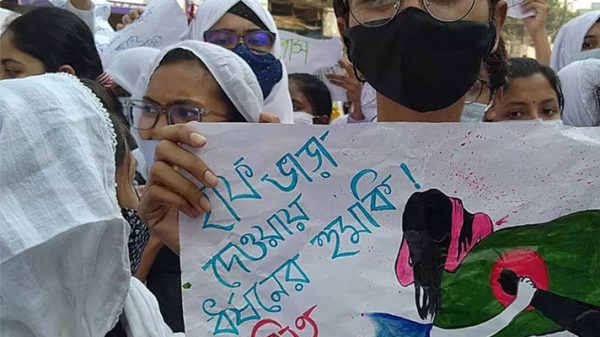 হাফ ভাড়া দেওয়ায় ধর্ষণের হুমকির প্রতিবাদ ও বিচারের দাবিতে রাজধানীর বকশীবাজার সড়ক অবরোধ করে আন্দোলন করছে বেগম বদরুন্নেসা সরকারি মহিলা কলেজ ও ঢাকা কলেজের শিক্ষার্থীসহ সাত কলেজের ছাত্রছাত্রীরা। আজ রোববার