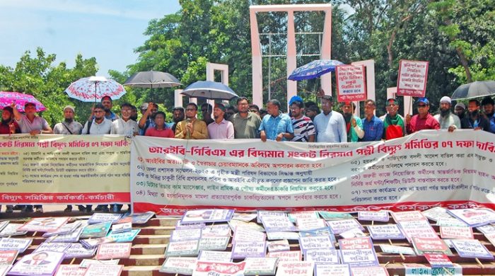 পল্লী বিদ্যুৎ উন্নয়ন বোর্ড চেয়ারম্যানের অপসারণসহ ৭ দফা দাবিতে টানা ৭ দিন ধরে আন্দোলন করছেন পল্লী বিদ্যুৎ সমিতির কয়েক হাজার কর্মকর্তা-কর্মচারী। মঙ্গলবার (২৭ মে) জাতীয় শহীদ মিনারে অবস্থান কর্মসূচি চালিয়ে