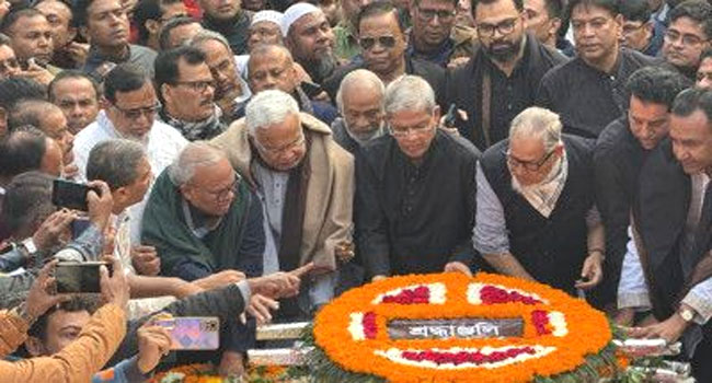 ১৯৭১ সালে ১৪ ডিসেম্বর পাকিস্তানি হানাদার বাহিনীর হাতে নিহত জাতির শ্রেষ্ঠ সন্তান শহীদ বুদ্ধিজীবীদের প্রতি শ্রদ্ধা জানিয়েছে বিএনপি। শনিবার (১৪ ডিসেম্বর) সকাল সাড়ে ৯টায় রাজধানীর মিরপুরের শহীদ বুদ্ধিজীবী স্মৃতিসৌধে বিএনপি