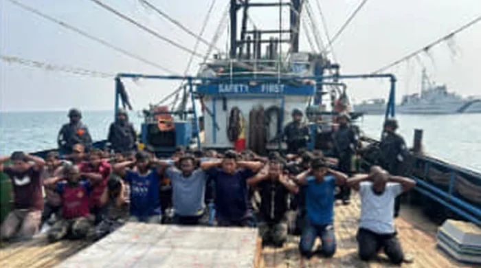 আটক বাংলাদেশি ৭৮ নাবিকসহ এফভি লায়লা-২ ও এফবি মেঘনা-৫ ট্রলারের ছবি প্রকাশ করেছে ভারতীয় কোস্ট গার্ড। গতকাল মঙ্গলবার রাতে সংস্থাটির অফিশিয়াল ফেসবুক পেজ ও এক্স হ্যান্ডলে মোট তিনটি ছবি প্রকাশ