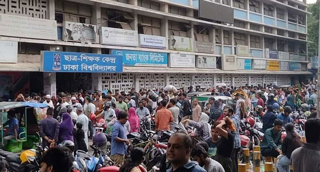 দেশের বিভিন্ন জেলায় বন্যাদুর্গতের সহায়তা করার জন্য ঢাকা বিশ্ববিদ্যালয়ের (ঢাবি) ছাত্র-শিক্ষক কেন্দ্রে (টিএসসি) বৈষম্যবিরোধী ছাত্র আন্দোলনের গণত্রাণ সংগ্রহ কর্মসূচিতে মানুষের ঢল লক্ষ করা গেছে। আজ শুক্রবার দ্বিতীয় দিনের মতো এ
