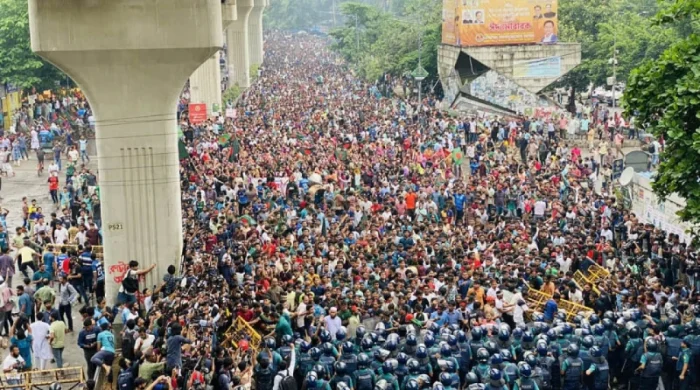 কোটাবিরোধী আন্দোলনে এক দফা দাবিতে শুরু হয়েছে আজকের ‘বাংলা ব্লকেড’ কর্মসূচি। পূর্বঘোষিত কর্মসূচি অনুযায়ী রাজধানীর সায়েন্স ল্যাবরেটরি মোড় অবরোধ করেছেন সাত কলেজ শিক্ষার্থীরা। বুধবার (১০ জুলাই) সকাল সাড়ে ১০টায় ঢাকা