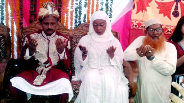 ভালোবাসার টানে সুদূর যুক্তরাষ্ট্র থেকে বাংলাদেশে ছুটে এলেন এক মার্কিন তরুণী। বিয়ে বন্ধনে আবন্ধ হলেন চাঁদপুরের এক যুবকের সাথে।তাদের এ ব্যতিক্রমধর্মী বিয়ে এলাকায় চাঞ্চল্য তৈরি করেছে। বিদেশি নববধূকে এক নজর