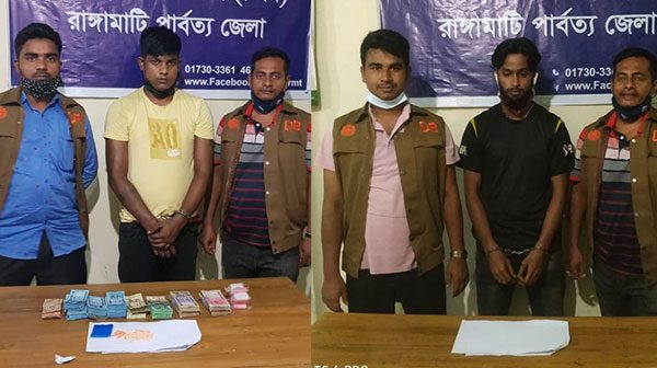 রাঙামাটি শহরে ইয়াবা বিক্রির অন্যতম হোতা শিমুল চৌধুরী (৩১) ও অপর মাদক বিক্রেতা মাসুম (২৬)কে ইয়াবা ও পাঁচ লাখ টাকাসহ আটক করেছে জেলার ডিবি পুলিশ। গতকাল রাতে জেলা গোয়েন্দা শাখার