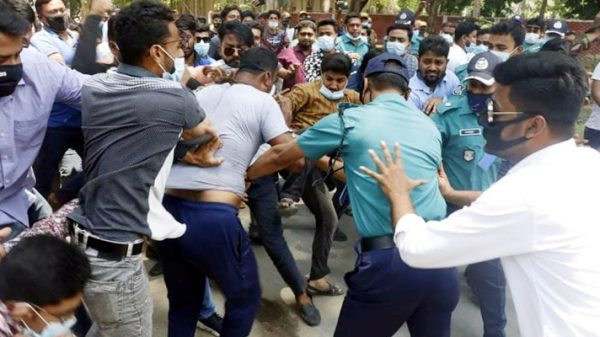 রাজশাহী বিশ্ববিদ্যালয়ে (রাবি) চাকরি প্রত্যাশী ছাত্রলীগ নেতাকর্মীদের উপর হামলা চালিয়েছে মহানগর ছাত্রলীগ। এ ঘটনায় বিশ্ববিদ্যালয়ের তিন কর্মকর্তা আহত হয়েছেন বলে জানা গেছে। তারা হলেন- উপরেজিস্ট্রার মো. মামুন, সেকশন অফিসার মো.