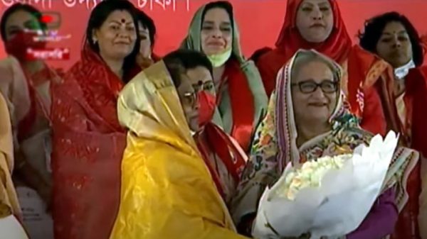 আওয়ামী লীগের সভানেত্রী প্রধানমন্ত্রী শেখ হাসিনা মহিলা আওয়ামী লীগের সম্মেলন মঞ্চে উঠেছেন। আজ শনিবার দুপুর ২টা ৫৮ মিনিটে তিনি সোহরাওয়ার্দী উদ্যানের মঞ্চে প্রধান অতিথির আসন গ্রহণ করেন। প্রধানমন্ত্রী সমাবেশস্থলে পৌঁছানোর