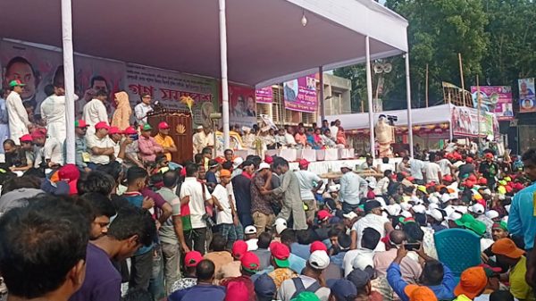 ফরিদপুরে বিএনপির সমাবেশের আগের দিন থেকেই মাঠে অবস্থান নিয়ে রয়েছেন বিএনপির নেতাকর্মীরা। শহরের ছয় কিলোমিটার দূরে সমাবেশস্থল আব্দুল আজিজ ইন্সটিটিউট মাঠে বৃহস্পতিবার থেকেই বিএনপির নেতাকর্মীরা ভিড় করতে শুরু করেন। তাদের