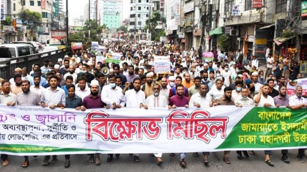রাজধানীতে ঝটিকা মিছিল করেছে জামায়াত। আজ রোববার সকালে কয়েকশ’ নেতাকর্মী ঢাকা মহানগরীর উত্তরের আমীর মুহাম্মদ সেলিম উদ্দিনের নেতৃত্বে এই মিছিল করে। বিক্ষোভ মিছিলটি বাড্ডা ওভার ব্রিজের নিচ থেকে শুরু হয়ে