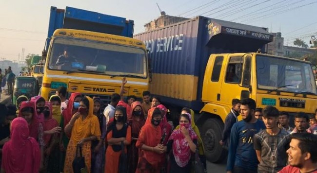 বেতন বাড়ানো ও নতুন বেতন কাঠামো বাস্তবায়নের দাবিতে গাজীপুরের শ্রীপুরে মহাসড়ক অবরোধ করে বিক্ষোভ করেছে শ্রমিকরা। মঙ্গলবার ভোর সাড়ে ৬টা থেকে উপজেলার জৈনাবাজার এলাকায় বিভিন্ন দাবিতে ঢাকা-ময়মনসিংহ মহাসড়ক অবরোধ করেন