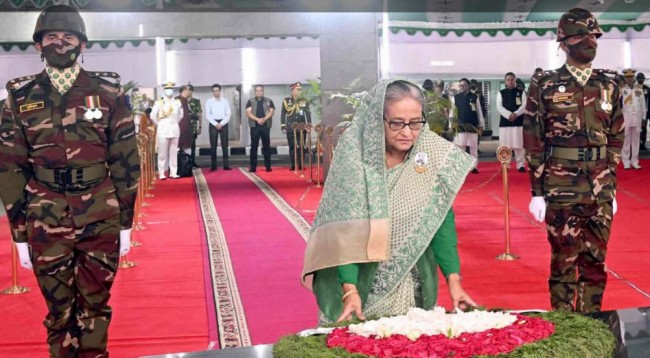 দ্বাদশ জাতীয় সংসদ নির্বাচনে জয়লাভের পর ধানমন্ডিতে বঙ্গবন্ধুর প্রতিকৃতিতে শ্রদ্ধা জানিয়েছেন আওয়ামী লীগ সভাপতি ও প্রধানমন্ত্রী শেখ হাসিনা। মঙ্গলবার সকালে বঙ্গবন্ধুর প্রতিকৃতিতে শ্রদ্ধা জানান তিনি। এর আগে বনানী কবরস্থানে ১৫