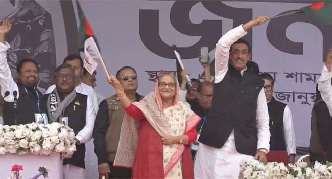 নারায়ণগঞ্জের সমাবেশে হাজির হয়েছেন প্রধানমন্ত্রী ও আওয়ামী লীগ সভাপতি শেখ হাসিনা। দীর্ঘ প্রায় ১৫ বছর পর তিনি এখানে এলেন। বৃহস্পতিবার (৪ জানুয়রি) বিকেল সোয়া ৩টায় শহরের ইসদাইর এলাকায় এ কে