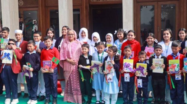 শিক্ষার্থীদের মাঝে নতুন বই বিতরণ কার্যক্রমের আনুষ্ঠানিক উদ্বোধন করলেন প্রধানমন্ত্রী শেখ হাসিনা। আজ রবিবার প্রধানমন্ত্রীর কার্যালয়ে শিক্ষার্থীর হাতে নতুন বই তুলে দিয়ে পাঠ্যবই বিতরণ কার্যক্রমের আনুষ্ঠানিক উদ্বোধন করেন সরকারপ্রধান। এ