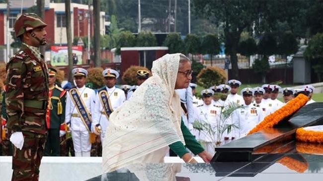 ১৯৭১ সালের ২১ নভেম্বর মহান মুক্তিযুদ্ধে সর্বোচ্চ আত্মত্যাগকারী সশস্ত্র বাহিনীর বীর শহীদদের প্রতি গভীর শ্রদ্ধা নিবেদন করেছেন প্রধানমন্ত্রী শেখ হাসিনা। সোমবার সকালে ঢাকা সেনানিবাসের শিখা অনির্বাণে পুষ্পস্তবক অর্পণের মাধ্যমে তিনি