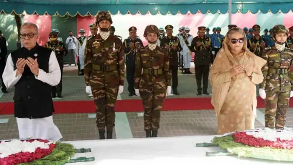 জাতির পিতা বঙ্গবন্ধু শেখ মুজিবুর রহমানের ১০৩তম জন্মবার্ষিকী ও জাতীয় শিশু দিবস উপলক্ষে তার সমাধিতে ফুল দিয়ে শ্রদ্ধা নিবেদন করেছেন রাষ্ট্রপতি মো. আব্দুল হামিদ ও প্রধানমন্ত্রী শেখ হাসিনা। আজ শুক্রবার