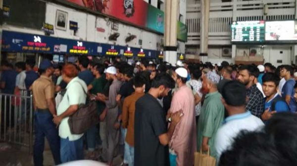 কমলাপুর রেলস্টেশনে এখন রাত আর দিন নেই। টিকিট না পেয়ে ঠায় দাড়ানো যাত্রীদের অনেকে। পরদিন যদি অন্য তারিখের টিকিট পাওয়া যায় সেই আশা তাদের। তবে আজকে মঙ্গলবার সব আশা শেষ