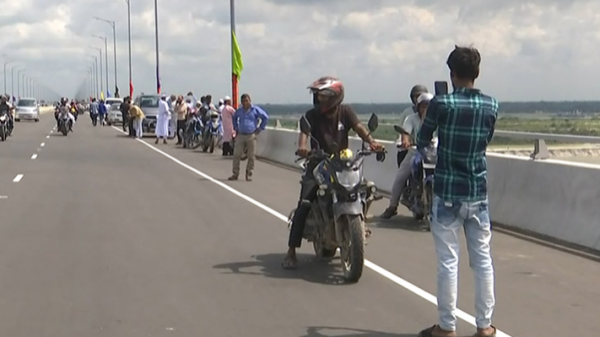 সোমবার ভোর ৬টা থেকে পদ্মা সেতুতে মোটরসাইকেল চলাচল নিষিদ্ধ করেছে সরকার। সকালে বাইকাররা সেতুর টোলপ্লাজা ঘিরে রাখে। এতে সেতু দিয়ে যানবাহন চলাচল বন্ধ হয়ে যায়। পরে বাইকারদের বুঝিয়ে একটি ফেরি