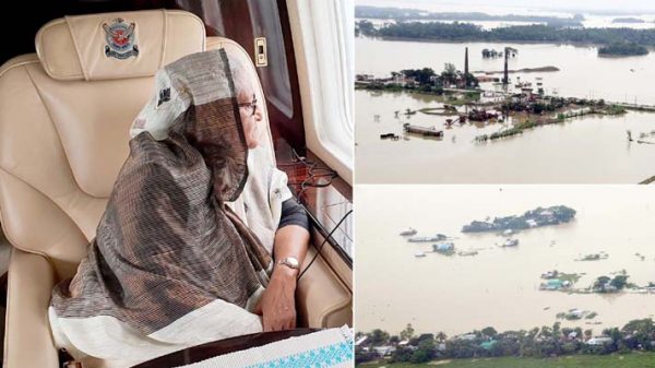 সিলেট, সুনামগঞ্জ ও নেত্রকোনা জেলার সার্বিক বন্যা পরিস্থিতি পরিদর্শন করতে বেরিয়েছেন প্রধানমন্ত্রী শেখ হাসিনা। মঙ্গলবার সকাল ৮টায় তেজগাঁওয়ের পুরাতন বিমানবন্দর থেকে হেলিকপ্টারযোগে তিনি এই তিন জেলা পরিদর্শনে রওনা হন। এর