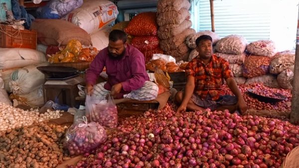 দিনাজপুরের হিলি স্থলবন্দরে গত পাঁচদিন ধরে থমকে আছে দেশি পেঁয়াজের বাজার। ভারত থেকে আমদানি হওয়ার পর খুচরা পর্যায়ে কেজিতে ২০-২৫ টাকা কমলেও এখনো ৬০ টাকায় স্থির হয়ে আছে এই নিত্যপণ্যটির