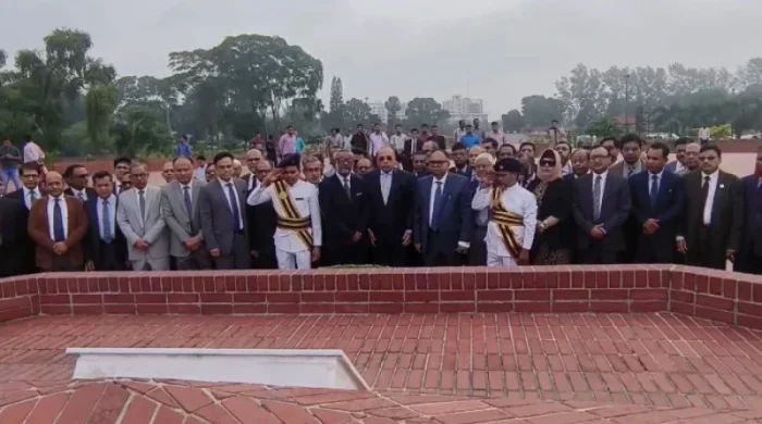 সাভারে জাতীয় স্মৃতিসৌধ ও কেন্দ্রীয় শহীদ মিনারে শহীদদের প্রতি শ্রদ্ধা জানিয়েছেন নবনিযুক্ত প্রধান বিচারপতি সৈয়দ রেফাত আহমেদ। এ সময় তার সঙ্গে ছিলেন সুপ্রিম কোর্টের অন্যান্য বিচারপতিরা। আজ সোমবার প্রথমে সকাল