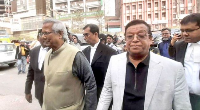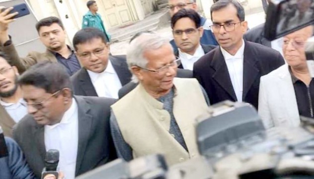 শ্রম আইন লঙ্ঘনের মামলায় ছয় মাসের দণ্ড বাতিল ও জামিন চেয়ে করা আবেদনে হাজিরা দিতে শ্রম আপিলের ট্রাইব্যুনালে উপস্থিত হয়েছেন ড. মোহাম্মদ ইউনূসসহ চারজন। বেলা পৌনে ১১টায় আইনজীবীকে সাথে নিয়ে