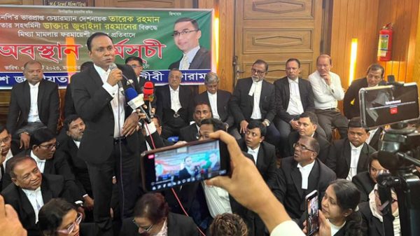 বিএনপির ভারপ্রাপ্ত চেয়ারম্যান তারেক রহমান ও তার স্ত্রী ডা. জুবাইদা রহমানকে দুদকের মামলায় সাজা দেয়ার প্রতিবাদে সুপ্রিম কোর্ট ও ঢাকা আইনজীবী সমিতির সামনে অবস্থান কর্মসূচি পালন করেছেন বিএনপি সমর্থক আইনজীবীরা।