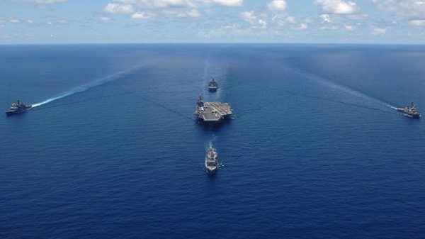 প্রশান্ত মহাসাগরে একটি সামরিক মহড়ায় অংশ নিয়েছে তিন মার্কিন যুদ্ধজাহাজ। গত কয়েক বছরের মধ্যে প্রথমবারের মতো অনুষ্ঠিত এ মহড়ার বিরুদ্ধে তীব্র প্রতিক্রিয়া ও উদ্বেগ জানিয়েছে চীন। বেইজিংয়ের পক্ষ থেকে বলা