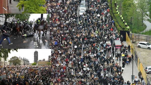 মার্কিন কৃষ্ণাঙ্গ নাগরিক জর্জ ফ্লয়েড হত্যার বিচার ও আমেরিকাসহ বিশ্বের বিভিন্ন দেশে বর্ণবাদী আচরণের প্রতিবাদে বিশ্বের বিভিন্ন দেশের মতো ব্রিটেনের বিভিন্ন শহরে পর পর দু’দিন হাজার হাজার মানুষের বিক্ষোভ ও