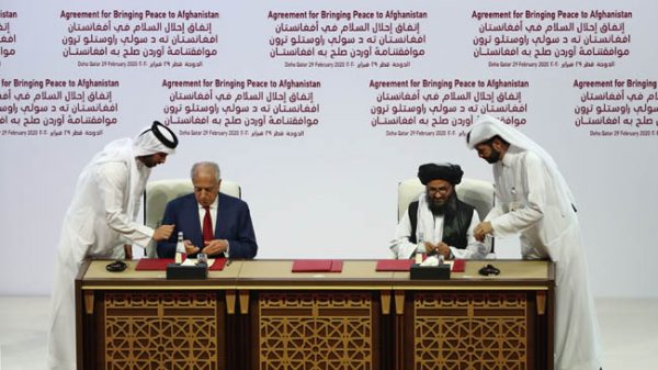 আফগানিস্তান থেকে সেনা প্রত্যাহার নিয়ে তালেবানের সাথে চুক্তি স্বাক্ষর করেছে যুক্তরাষ্ট্র। দীর্ঘ ১৯ বছর ধরে চলা আফগান যুদ্ধের অবসানে কাতারের মধ্যস্থতায় এ চুক্তি স্বাক্ষরিত হয়। শনিবার কাতারের রাজধানী দোহায় মার্কিন