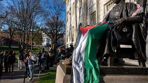 মার্কিন যুক্তরাষ্ট্রে চলমান ক্যাম্পাস বিক্ষোভের মধ্যে হার্ভার্ড বিশ্ববিদ্যালয়ের ইসরাইল-বিরোধী বিক্ষোভকারীরা আইভি লীগ স্কুলে আমেরিকান পতাকা নামিয়ে ফিলিস্তিনি পতাকা উত্তোলন করেছে। নিউ ইয়র্ক পোস্ট এখবর জানিয়েছে। তিনজন ছাত্র জন হার্ভার্ডের আইকনিক