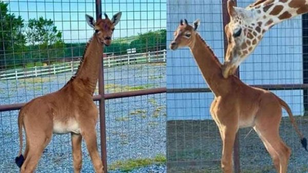 মার্কিন যুক্তরাষ্ট্রের টেনেসির ব্রাইটস চিড়িয়াখানায় সম্প্রতি জন্ম নিয়েছে ডোরাকাটা দাগবিহীন, একরঙা একটি জিরাফ। এই মেয়ে জিরাফটিকে বিশ্বের একমাত্র ডোরাকাটা দাগবিহীন জিরাফ মনে করা হচ্ছে। এটির গায়ের রঙ শুধুমাত্র বাদামি। নব্রাইটস