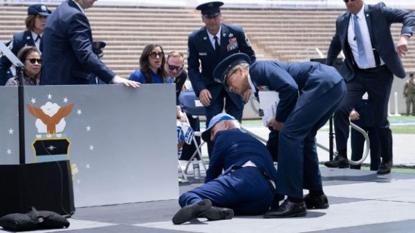 কলোরাডো অঙ্গরাজ্যে মার্কিন বিমান বাহিনী একাডেমির একটি অনুষ্ঠানের মঞ্চে হোঁচট খেয়ে পড়ে গেছেন প্রেসিডেন্ট জো বাইডেন। এ সময় আশপাশে থাকা কর্মকর্তারা তাকে মাটি থেকে তুলতে ছুটে যান। তবে কারও সাহায্য