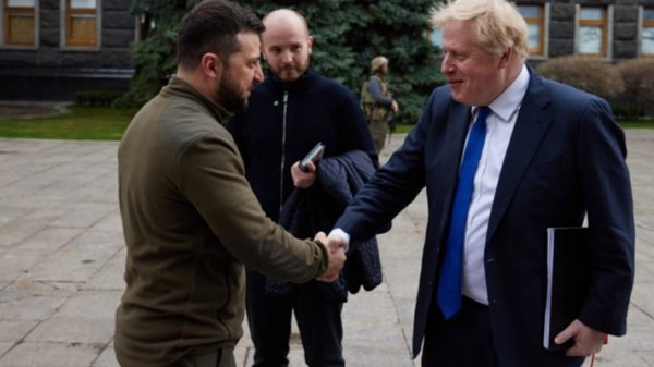ব্রিটিশ প্রধানমন্ত্রী বরিস জনসন ঝটিকা সফরে ইউক্রেন গেছেন। দেশটির রাজধানী কিয়েভে জেলেনস্কির সঙ্গে বৈঠকও করেন তিনি। ইউক্রেন প্রেসিডেন্ট ভলোদিমির জেলেনস্কির সাথে জনসনের বৈঠকের ছবি ব্রিটেনে ইউক্রেন দূতাবাসের টুইটারে পোস্ট করার