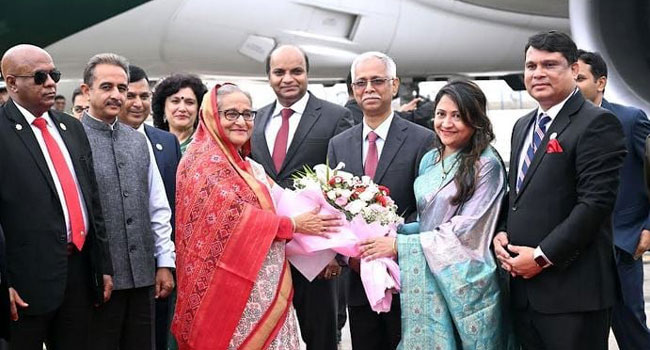 প্রধানমন্ত্রী শেখ হাসিনা ভারতের প্রধানমন্ত্রী নরেন্দ্র মোদির আমন্ত্রণে দুই দিনের রাষ্ট্রীয় সফরে আজ শুক্রবার বিকেলে নয়াদিল্লি পৌঁছেছেন। প্রধানমন্ত্রী ও তার সফরসঙ্গীদের বহনকারী বিমান বাংলাদেশ এয়ারলাইন্সের একটি ফ্লাইট (স্থানীয় সময়) বিকেল