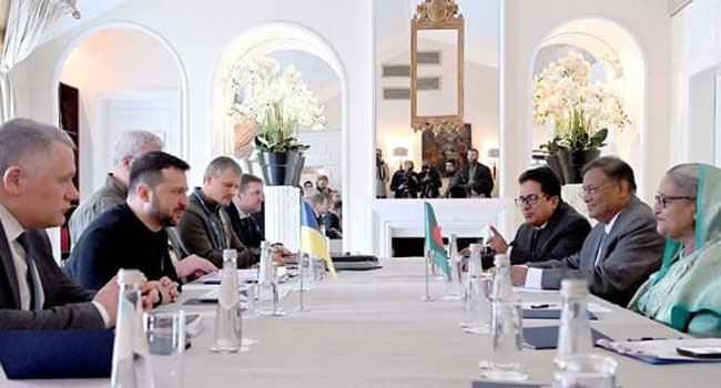 প্রধানমন্ত্রী শেখ হাসিনা আজ ইউক্রেনের প্রেসিডেন্ট ভলোদিমির জেলেনস্কির সাথে এক বৈঠকে রাশিয়া-ইউক্রেন যুদ্ধ বন্ধের উপায় খুঁজে বের করার আহ্বান জানিয়েছেন। সকালে মিউনিখ সিকিউরিটি কনফারেন্স (এমএসসি) ২০২৪-এর সাইডলাইনে হোটেল বেয়েরিশার হফে
