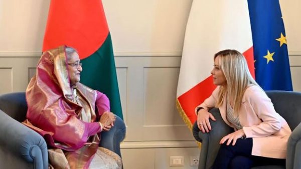 প্রধানমন্ত্রী শেখ হাসিনার সাথে দ্বিপক্ষীয় এক বৈঠকে গতকাল ইতালির প্রধানমন্ত্রী জর্জিয়া মেলোনি বৈধ উপায়ে বাংলাদেশি শ্রমিকদের অভিবাসনের প্রতি গুরুত্বারোপ করেছেন। বৈঠক শেষে সাংবাদিকদের ব্রিফ করেন পররাষ্ট্রমন্ত্রী এ কে আবদুল মোমেন।