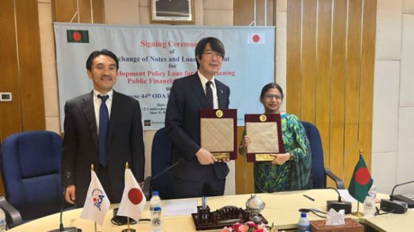 বাংলাদেশে জাপানের রাষ্ট্রদূত ইওয়ামা কিমিনোরি এবং অর্থনৈতিক সম্পর্ক বিভাগের সচিব শরিফা খান মঙ্গলবার বাংলাদেশে জাপানের ৪৪তম অফিসিয়াল ডেভেলপমেন্ট অ্যাসিসটেন্স (ওডিএ) ইয়েন ঋণের নোট বিনিময়ে চুক্তি স্বাক্ষর করেন। ৪৪তম জাপানি ইয়েন