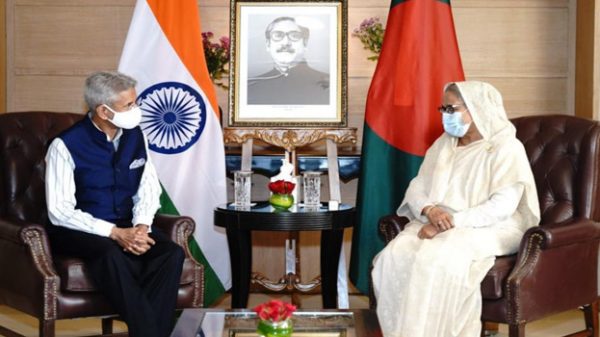 ভারতের পররাষ্ট্রমন্ত্রী এস জয়শঙ্কর সোমবার নয়াদিল্লিতে বাংলাদেশের প্রধানমন্ত্রী শেখ হাসিনার সাথে সাক্ষাৎ করেছেন। এই রিপোর্ট লেখা পর্যন্ত শেখ হাসিনা ও জয়শঙ্করের মধ্যে (আইটিসি মৌর্যে) বৈঠক চলছে। বাংলাদেশের পররাষ্ট্র মন্ত্রণালয় জানিয়েছে,