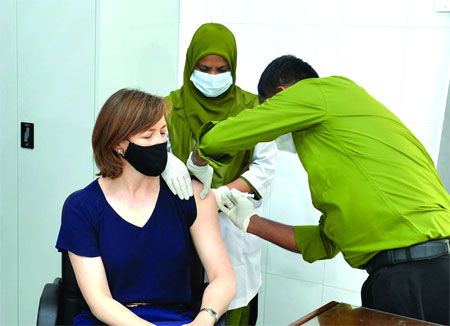 ঢাকায় নিযুক্ত বিদেশি কূটনীতিকদের টিকাদান কার্যক্রম শুরু হয়েছে। গতকাল কর্মসূচিটির উদ্বোধনী দিনে ২১ জন কূটনীতিকসহ বিভিন্ন দূতাবাস ও হাইকমিশন সংশ্লিষ্ট মোট ৩০ জন টিকা গ্রহণ করেছেন। পররাষ্ট্র প্রতিমন্ত্রী শাহরিয়ার আলম