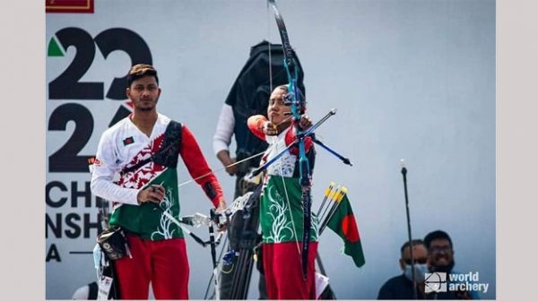 এশিয়া কাপ ওয়ার্ল্ড র্যাংকিং আর্চারি টুর্নামেন্ট স্টেজ-১-এ স্বর্ণ জিতেছে বাংলাদেশ। রিকার্ভ মিশ্র দলগত ইভেন্টে কাজাখস্তানকে ৫-৩ সেট পয়েন্টে হারিয়ে এই পদক জিতেছে বাংলাদেশের দিয়া সিদ্দিকী ও হাকিম আহমেদ রুবেল জুটি।