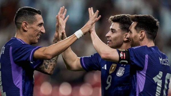 বিশ্বকাপের আগে প্রীতি ম্যাচে বড় জয় পেয়েছে আর্জেন্টিনা। সংযুক্ত আরব আমিরাতকে ৫-০ গোলে হারিয়েছে এই ল্যাটিন আমেরিকান পরাশক্তি। বাংলাদেশ সময় বুধবার রাত সাড়ে ৯টায় মোহাম্মদ বিন জায়েদ স্টেডিয়ামে মুখোমুখি হয়