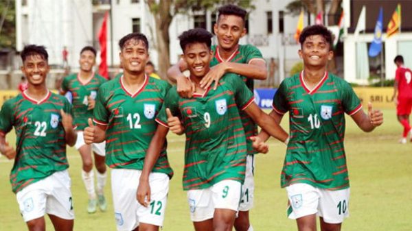 সাফ অনূর্ধ্ব-১৭ চ্যাম্পিয়নশিপে মালদ্বীপের জালে গোল উৎসব করে সবার আগে সেমিফাইনালে উঠে গেছে বাংলাদেশ। আজ বুধবার শ্রীলঙ্কার রেসকোর্স স্টেডিয়ামে মালদ্বীপকে ৫-০ গোলে হারিয়েছে পল স্মলির শিষ্যরা। ‘এ’ গ্রুপে টানা দুই