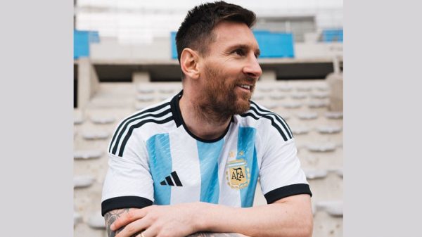 আসন্ন কাতার বিশ্বকাপের জার্সি উন্মোচন করেছে আর্জেন্টিনা। শুক্রবার ৮ জুলাই দেশটির ফুটবল ফেডারেশন টুইটারে নতুন জার্সির ছবি প্রকাশ করেছে। ছবিতে দেখা যায় অধিনায়ক লিওনেল মেসি বিশ্বকাপ জার্সি পড়ে আছেন। তার