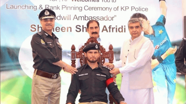 পাকিস্তানের উপ-পুলিশ সুপারের (ডিএসপি) সাম্মানিক পদ পেলেন দেশটির পেসার শাহীন শাহ আফ্রিদি। তারকা এ ক্রিকেটারকে সোমবার শুভেচ্ছা দূত হিসেবে নিয়োগ দিয়েছে খাইবার পাখতুনখোয়া পুলিশ বিভাগ। তরুণ পেসার শাহীন পাকিস্তান পুলিশের