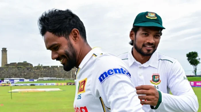 কলম্বো টেস্টে ইনিংস ও ৭৮ রানের হারের সঙ্গে সিরিজটাও খুঁইয়েছে বাংলাদেশ। ম্যাচ শেষে সংবাদ সম্মেলনে দলের প্রতিনিধি হয়ে এসেছিলেন অধিনায়ক নাজমুল হোসেন শান্ত। সংবাদ সম্মেলন প্রায় শেষ। সাংবাদিকদের প্রশ্নোত্তরও প্রায়