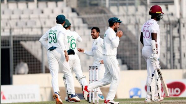 মিরপুর টেস্টের চতুর্থ দিনে ধুঁকতে থাকা উইন্ডিজকে দ্বিতীয় ইনিংসে মাত্র ১১৭ রান গুটিয়ে দিয়েছে বাংলাদেশ। আগের ইনিংসের লিড নিয়ে জয়ের জন্য টাইগারদের করতে হবে ২৩০ রান। মিরপুরে ঠিক যেন তৃতীয়