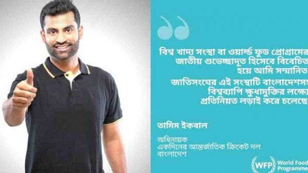 জাতিসংঘের বিশ্ব খাদ্য কর্মসূচির শুভেচ্ছাদূত হিসেবে নির্বাচিত হয়েছেন বাংলাদেশ ক্রিকেট দলের ওয়ানডে অধিনায়ক তামিম ইকবাল। শুক্রবার এক সংবাদ বিজ্ঞপ্তিতে এ তথ্য জানানো হয়েছে। এর প্রতিক্রিয়ায় তামিম বলেন, ‘আমি জাতিসংঘের সংস্থা